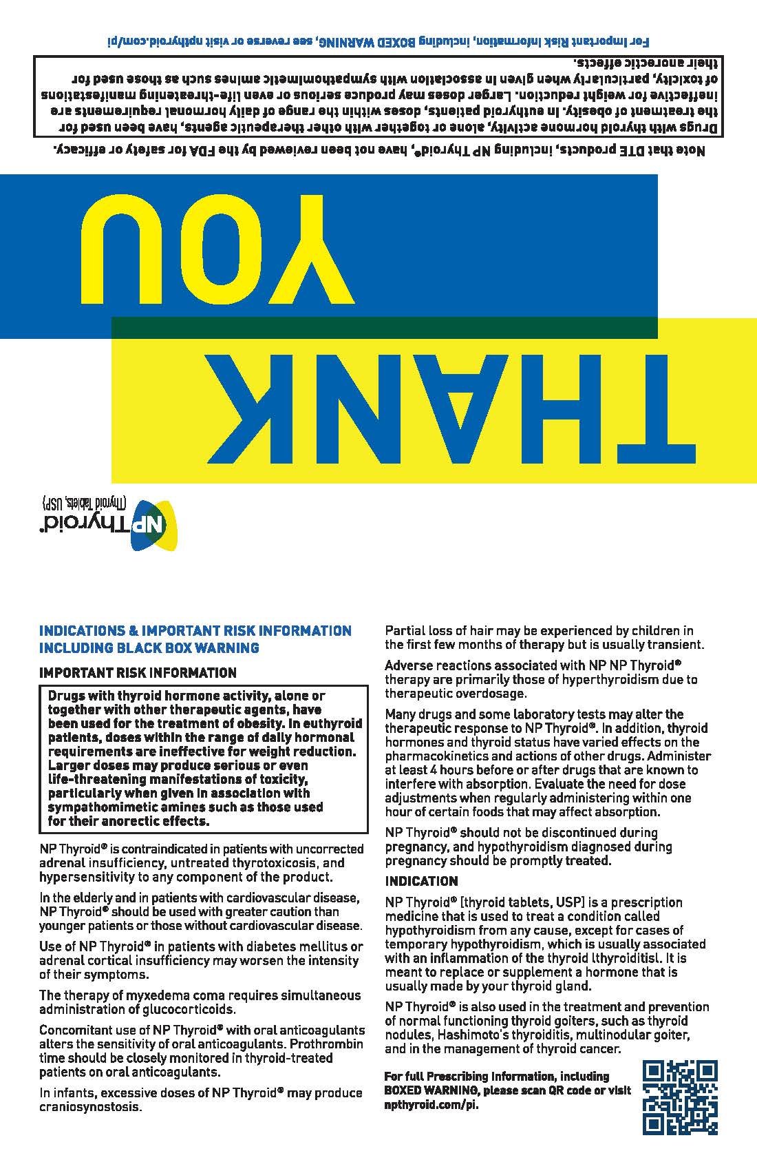 During an inter-company preceptorship with Alora Pharmaceuticals, the NP Thyroid® product sales team approached me to design two horizontal A2 bi-fold “thank you” greeting cards for the products’ sales team. The team required two designs: one “generic” design applicable to any season, and one “seasonal” spring-themed design, both aligned with the NP Thyroid® brand while in compliance with pharmaceutical advertising requirements.
